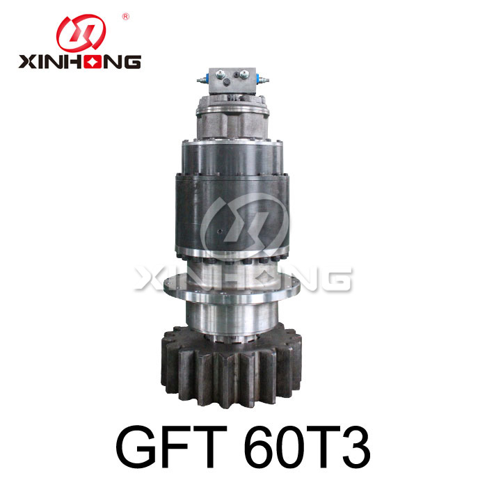 Ang mataas na lakas ng planeta na gearbox na ito ay nagsasama ng ilang set ng planeta ng planeta na binubuo ng sun gear (center gear), maraming mga gears ng planeta at singsing na gear na umiikot sa pagitan ng bawat isa. Ang pag -load mula sa sun gear ay ipinamamahagi sa maraming mga planeta na gears na maaaring mailapat upang kumilos ng isang panlabas na singsing o isang baras o spindle. Ang sentro ng sun gear ng mataas na lakas ng planeta ng gearbox ay maaaring magbago ng isang mataas na bilis at mababang metalikang kuwintas na input mula sa hydraulic motor o electric motor sa isang mababang bilis at mataas na metalikang kuwintas. Ang mataas na lakas ng planeta na gearbox na ito ay malawak na inilalapat sa mga drive ng gulong, pinatay na drive, winch drive, track drive at cutter head.
